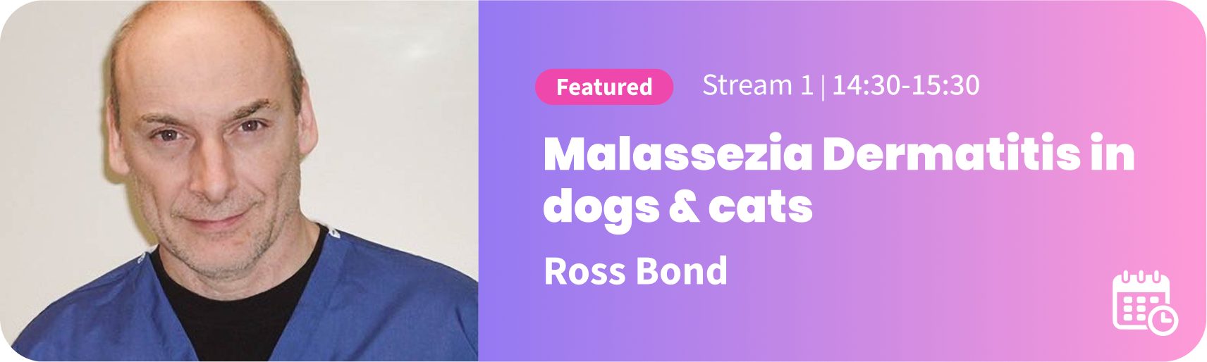 | Malassezia Dermatitis in Dogs & Cats | 12:15 – 13:00 | Ross Bond |